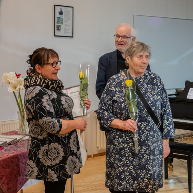 Konsertissa muistettiin pitkäaikaisia tekijöitä, kumppaneita ja talkoolaisia. Kuva. Merja Ollikainen